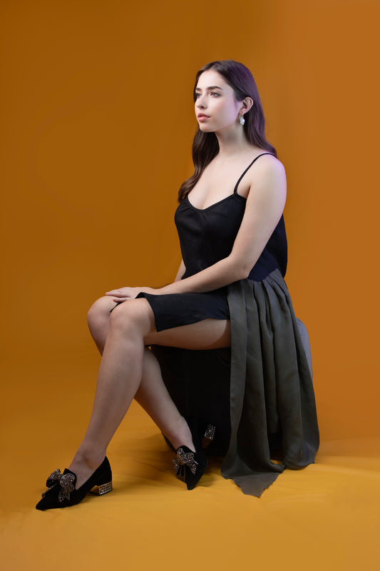 Asymmetrical Spaghetti Strap Dress with Contrasting Gather